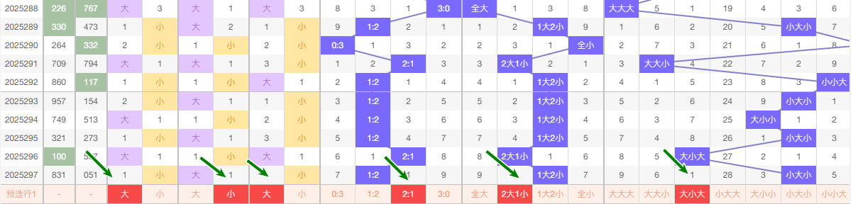 最近的5期当中十位大数出现的频次3次 小数出现2次 ,趋势平和 本期看好走小