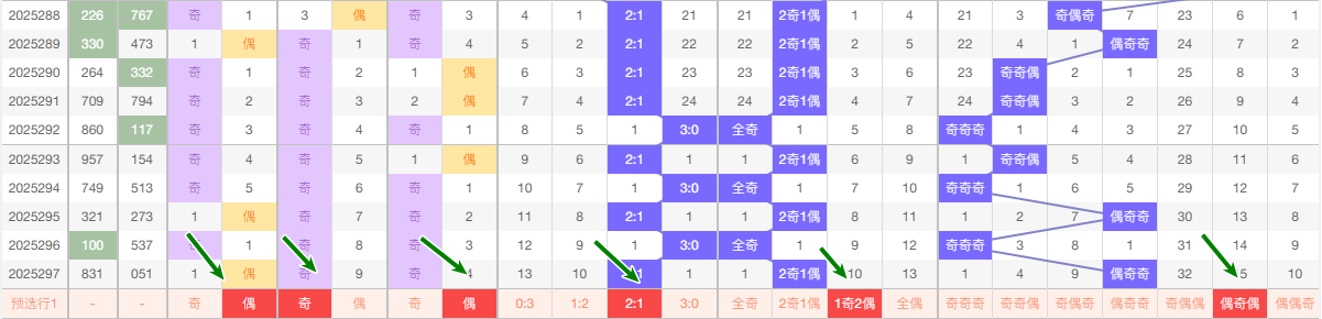 (二)、奇偶分析 奇数 13579 偶数 02468 在这5期 数据中 奇数出现 12次 偶数出现 3次 从昨天出号来看奇数占优, 本期还是看好偶数有号 看好 偶奇偶 奇奇偶