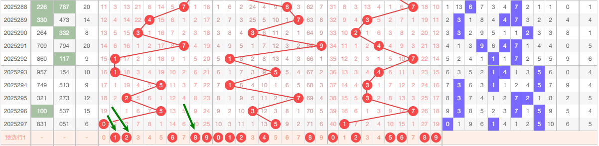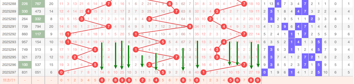 上期个位开出1,本区与上期的跨度为6,本期我们可以从上面走势图中看出选号的思路,本期 个位推荐关注:025689
