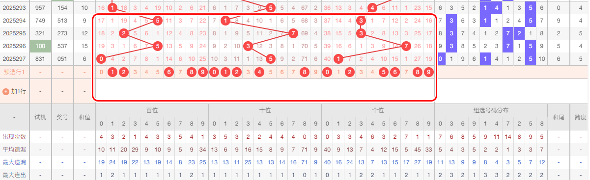上期百位开出0,本区与上期的跨度为5,本期我们可以从上面走势图中看出选号的思路,本期百位推荐关注:28619