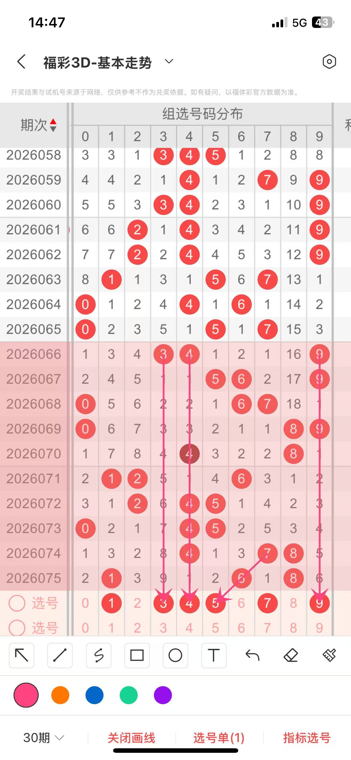 胆码:关注冷号3和9的回补,同时留意热号4的延续性(但需防其降温)。另外,1、2、5、6、8等近期活跃号码也有机会