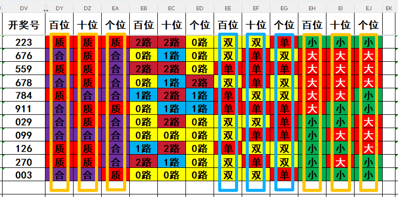 2,目前开奖号十位号码球11天当中,质数(12357)开出了8次,合数(04689)开出了3次,本期重点关注开奖号十位号码球合数的回补!