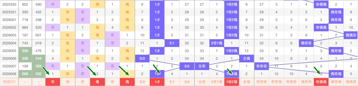 最近的5期当中十位大数出现的频次3  小数出现2 趋势平和 本期看好走小