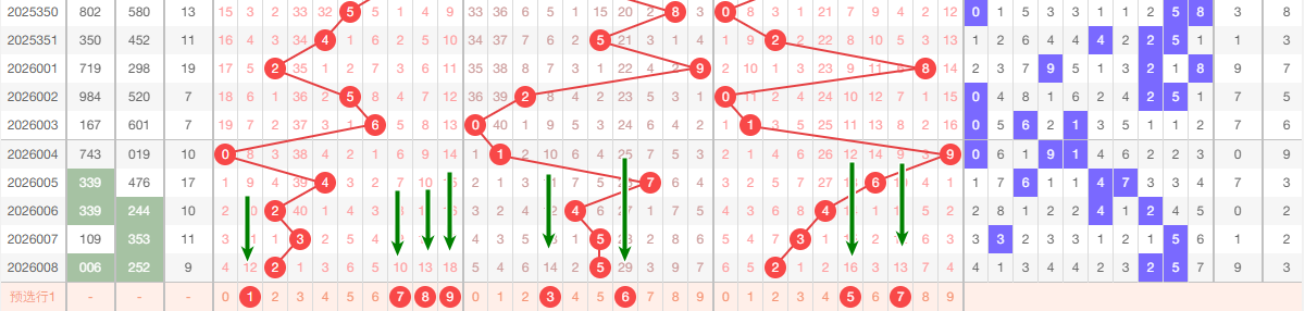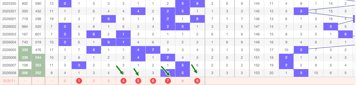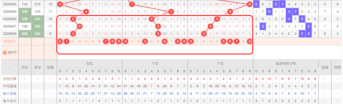 上期个位开出2,本区与上期的跨度为1,本期我们重点关注 567,本期 个位推荐关注:045679