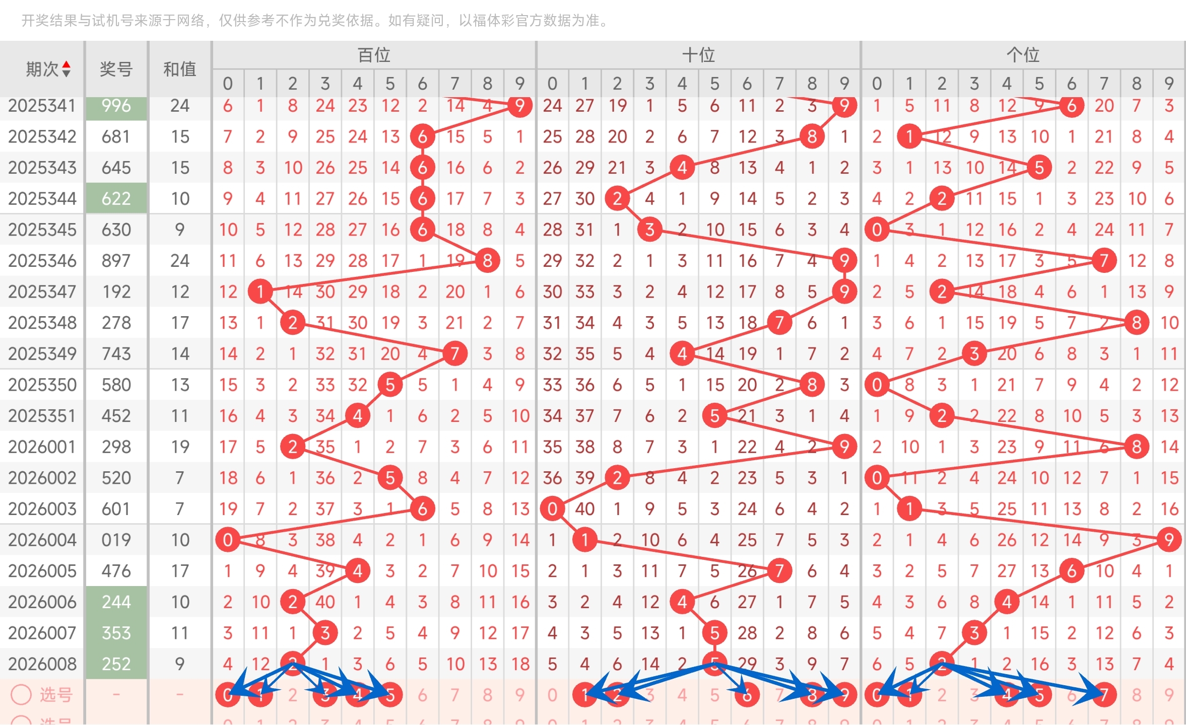 第2026003期福彩3D分析文章,5码定位命中601。