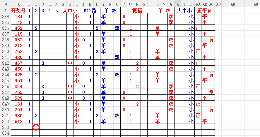 如上图56,大中小分析,中号3456出胆码,最低1个胆码,重点34