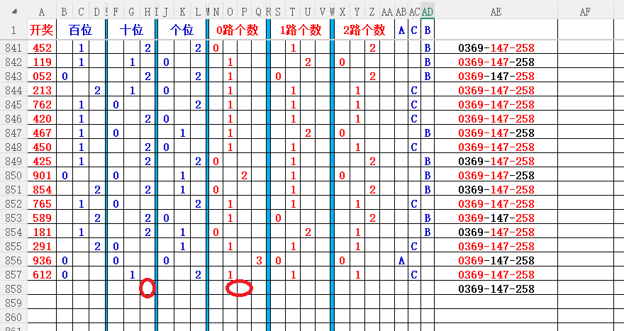 如上图2,012路分析01路尾走比较好,关注0369147尾;