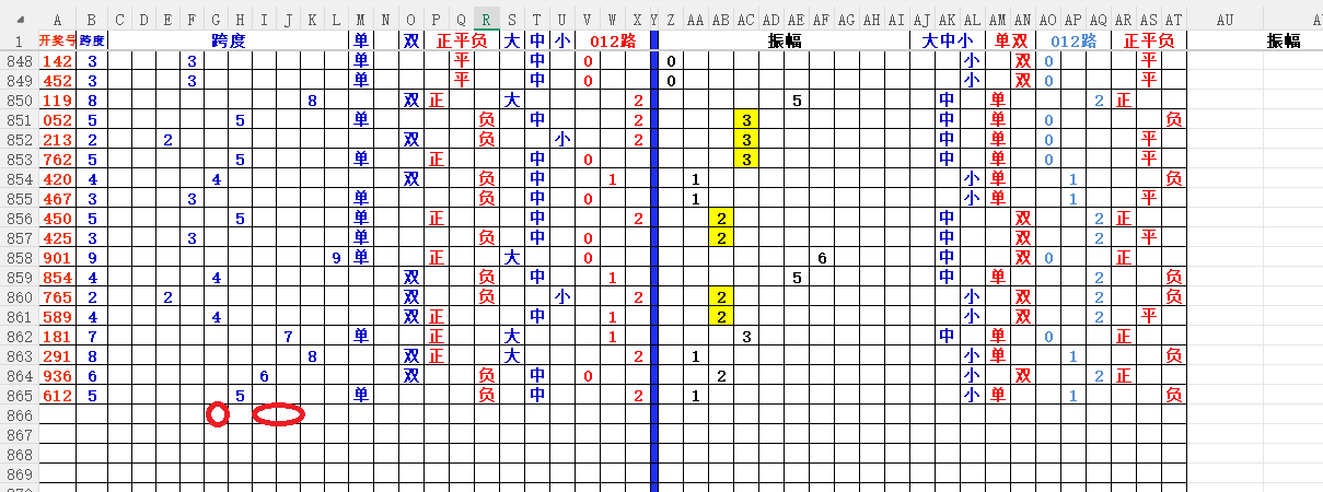 跨度:就是开奖号,最大数减去最小数所得的数,就是跨度。