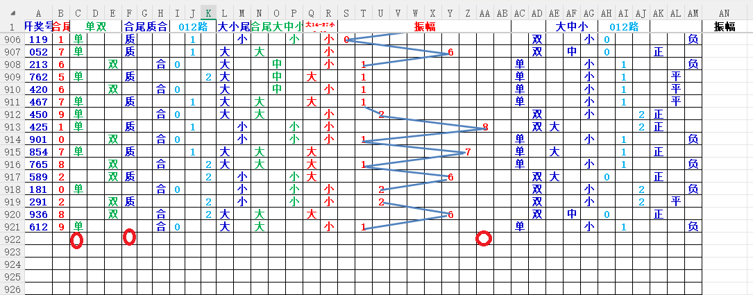 如上图56,012路分析。0369路号出胆,039中出,重点39胆码