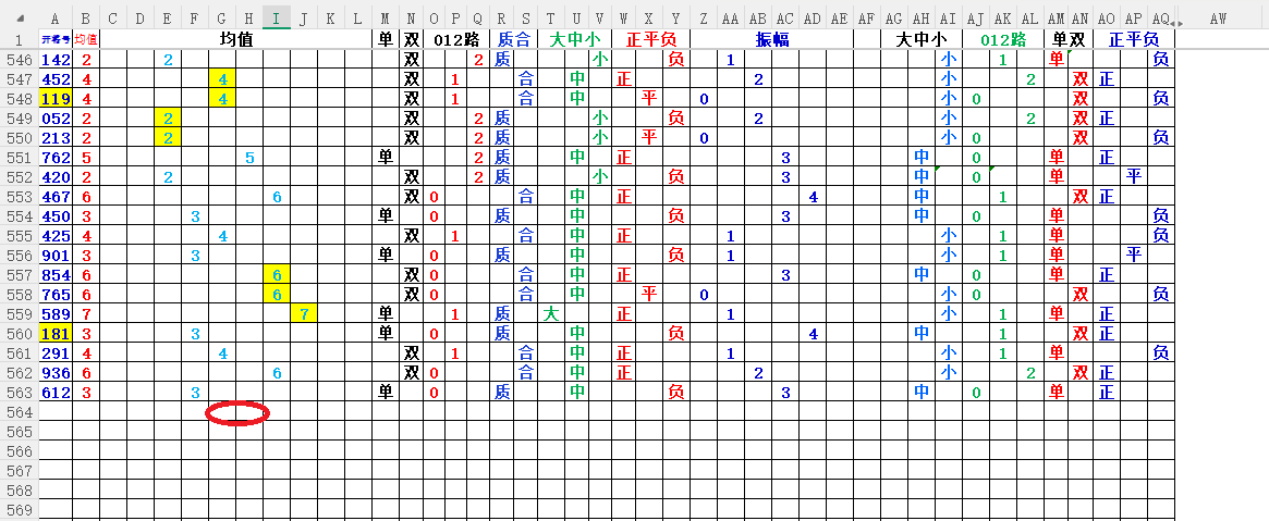 均值:就是开奖号每各数的总和除3,然后得到的余数,如果不够整除可以+1,-1,直到被整除得的数就是均值
