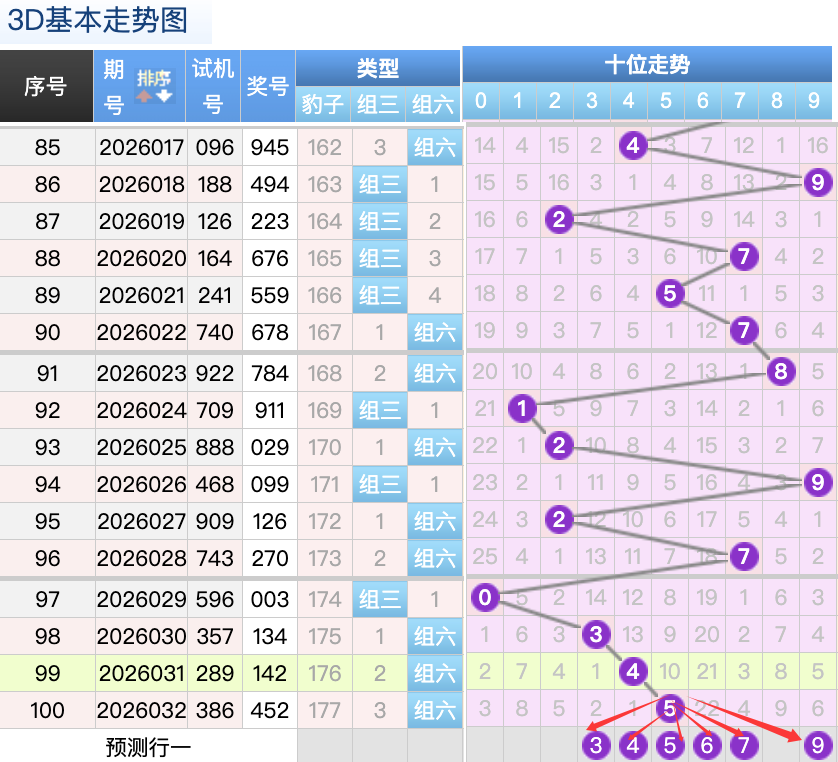 上期3D十位开出的奖号是5号,上期在十位上5号球这个号码在上期是一个小码回顺位冷回补落位点,本期来看7号和9号球在十位上要注意这两个号码是有机会继续顺着上期的5号球继续走出两号码落位趋势这里的两码是小周期号落位注意防守一码就好了,3号球还是个常搭配顺位号的落位点,然后6号球还是一个冷码回补的落位形态注意防守,再来看5号球是重码回补这个点位注意防守。