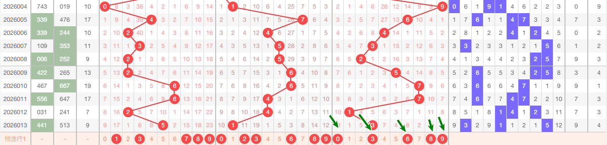 上期个位开出3,本区与上期的跨度为2,本期我们重点关注 036,本期 个位推荐关注:03689