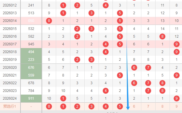 上图是福彩3D开奖号码走势分布图,我在上面标注出来的数字012345把这些数字当成一个区域,看上面走势图中标注出来的蓝色大箭头就知道,很明显的可以看出来蓝色大箭头的右边最近开出的数字居多,蓝色大箭头的左边最近开出来的号码比较少,本期看好蓝色大箭头的左边012345出1个或者2个数字吧。