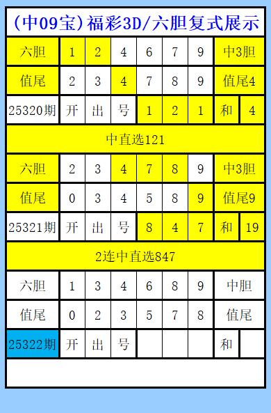 福彩3D第322期图文(中09宝),六胆推荐,上期五注中直选847