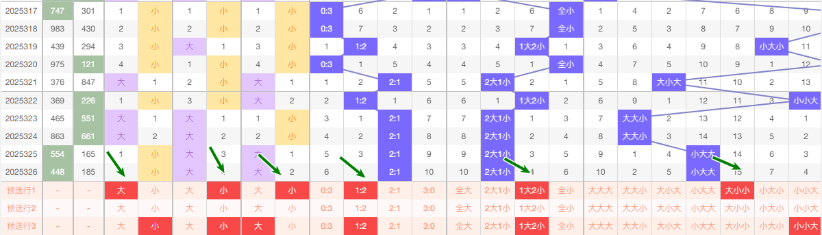 最近的5期当中十位大数出现的频次4次 小数出现1次 ,趋势平和 本期看好走大
