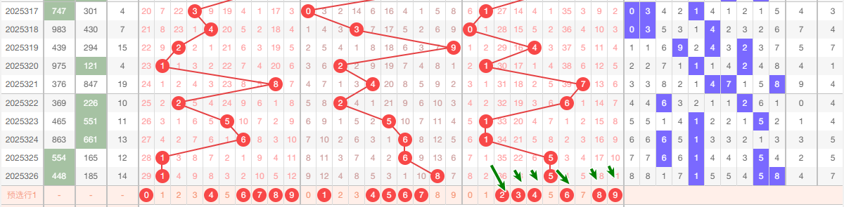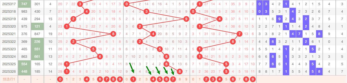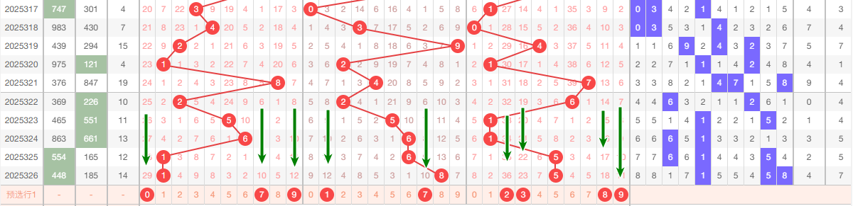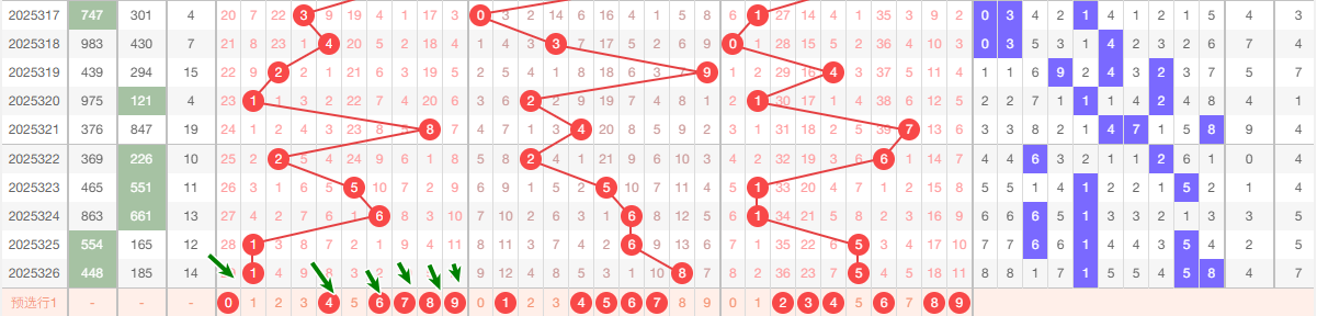 上期个位开出5,本区与上期的跨度为0,本期我们可以从上面走势图中看出选号的思路,本期 个位推荐关注:234689