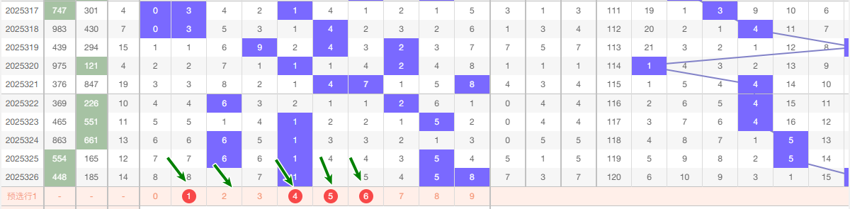 上期跨度7跨 1路跨 从上图看 本期主1456防23跨 供大家参考