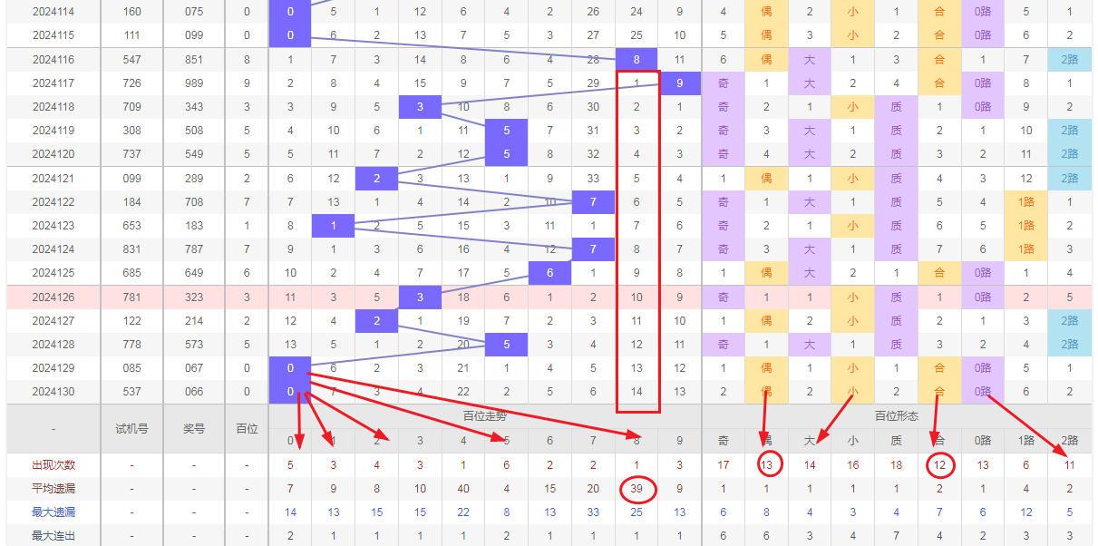 福彩3D百位分析:第130期百位开出号码0归属于小偶数,从上面百位走势图上可以看出近100期大小比为47:53奇偶比为56:44。近期数据还是比较极端的符合文章开头介绍的求均衡规律非等量现象。但这种均衡不会持续最终会被偏态运行打破,然后循环往复。但短期内大小相差0点,大数过热小数有回补需求本期个人认为走小数的概率更高。上期百位落号“0”号球,在百位号码开出0路号码0后向小数方向走出0个振幅。那么通过分析上期百位落位号码分析,号码走出0个振幅,号码走为小偶数,开出0路号码0。通过对百位落号趋势来分析,百位号码继续落位前端,通过对近10期的走势来看百位号码大小交替频繁走3期小数又走2期大数,最近小数比较强势,本期有走向小数号码的概率。那么本期我们在对百位号码进行研判时我个人的考虑百位号码会走出小数号码球,我们在百位关注的重点在01258这5个号码球上,百位号码近期奇偶切换频繁,0号球码属于0路号码小偶数,现偶数开出过多有继续向偶数的趋势。所以福彩3D第131期百位看好01258.