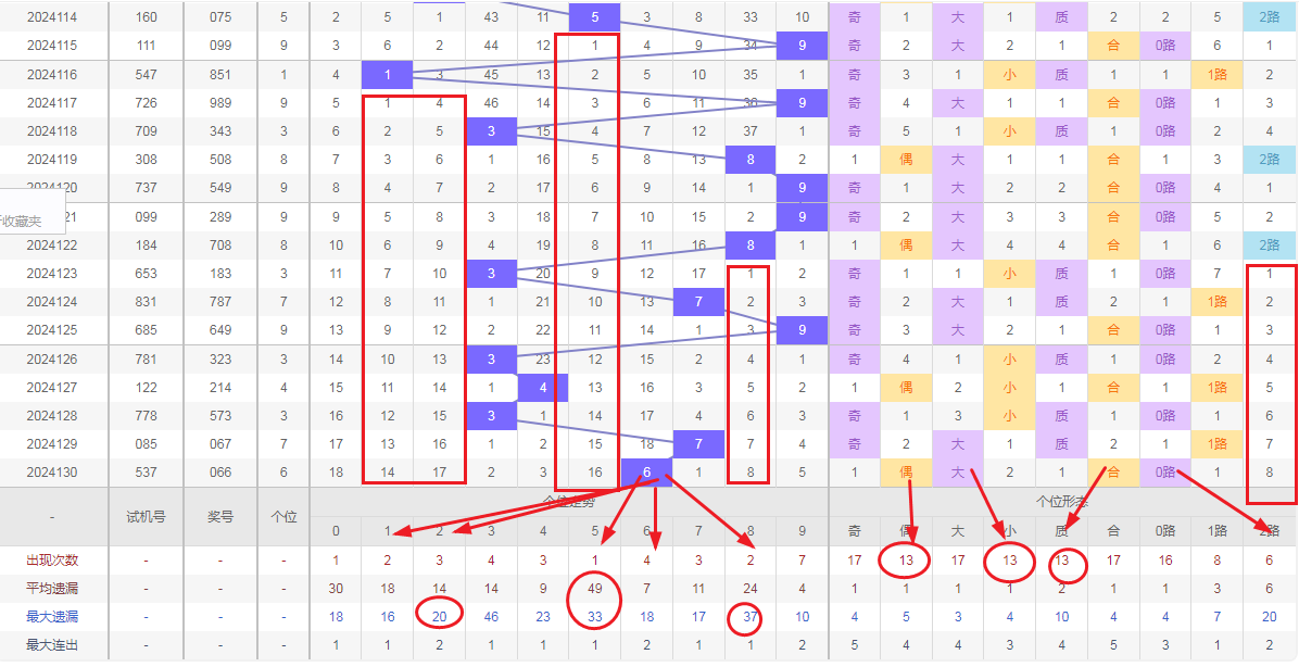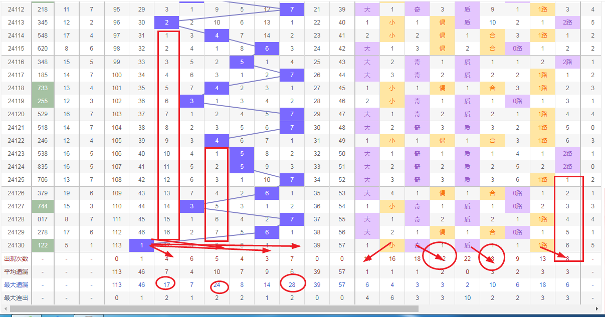 求均衡规律解释:求均衡是指如果某一个号码在一个区间长期不出现,总会在另一个期间进行回补。