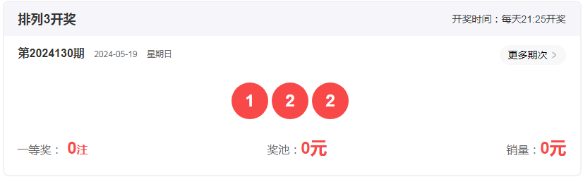 排列三第130期开奖回顾:开奖号码:122,形态:组三