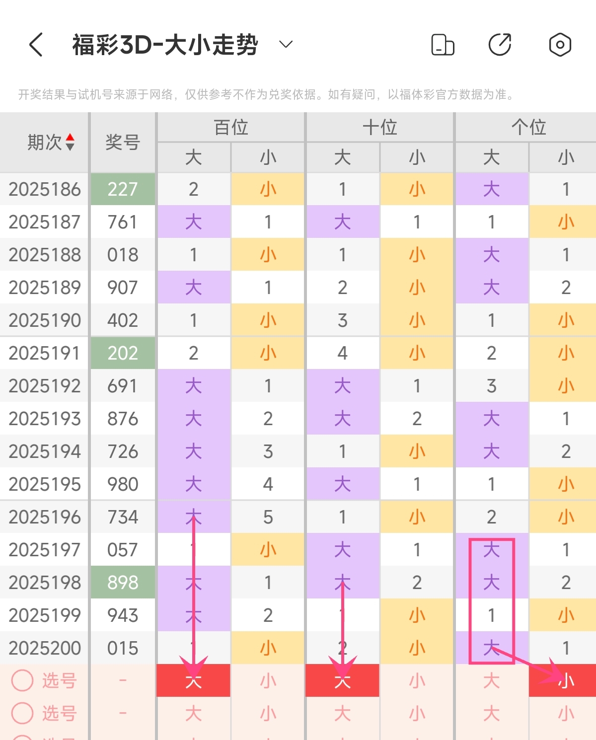 欢迎各位多友,来到福彩3D第2025201期开奖号码走势分析,我是浮星光。让我来给大家分析一下本期号码的走势,分析选号。预祝各位多友蛇年行大运,一击命中,成功登顶!