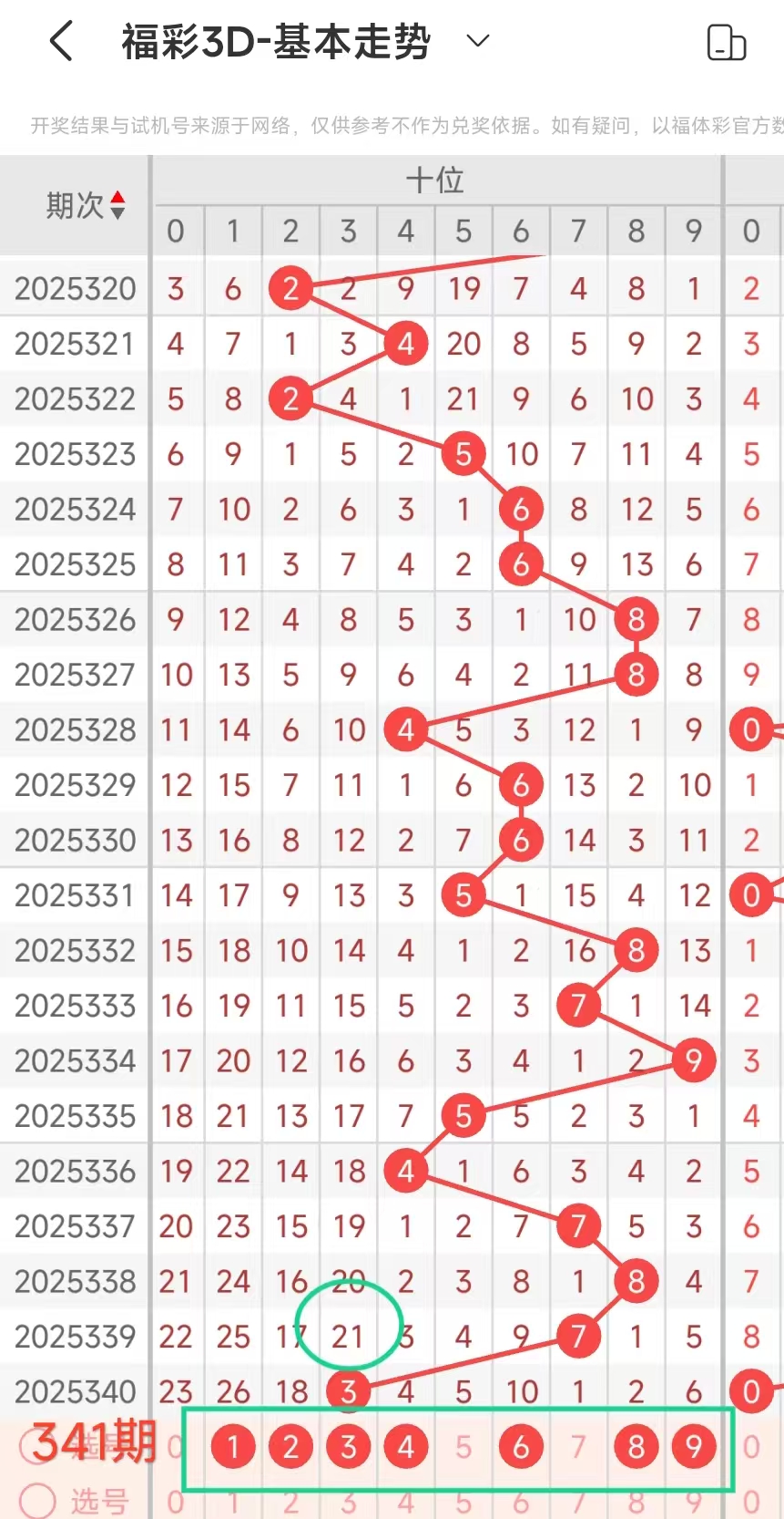 3、当个位开出0后下期开出:066799445,经统计0号出1次、1号出现0次、2号出现0次、3号出现0次、4号出现2次、5号出现1次、6号出现2次、7号出现1次、8号出现0次、9号出现2次。观察发现46号出现多次趋势好,本期可以考虑。