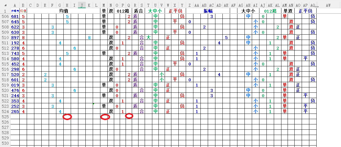 均值:就是开奖号每各数的总和除3,然后得到的余数,如果不够整除可以+1,-1,直到被整除得的数就是均值