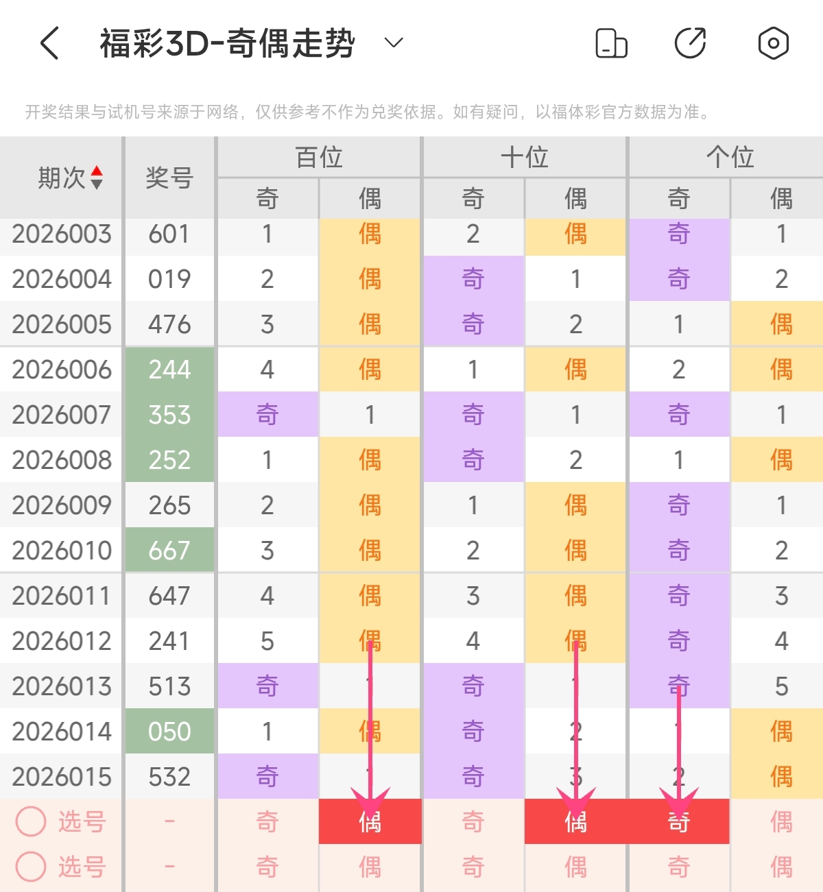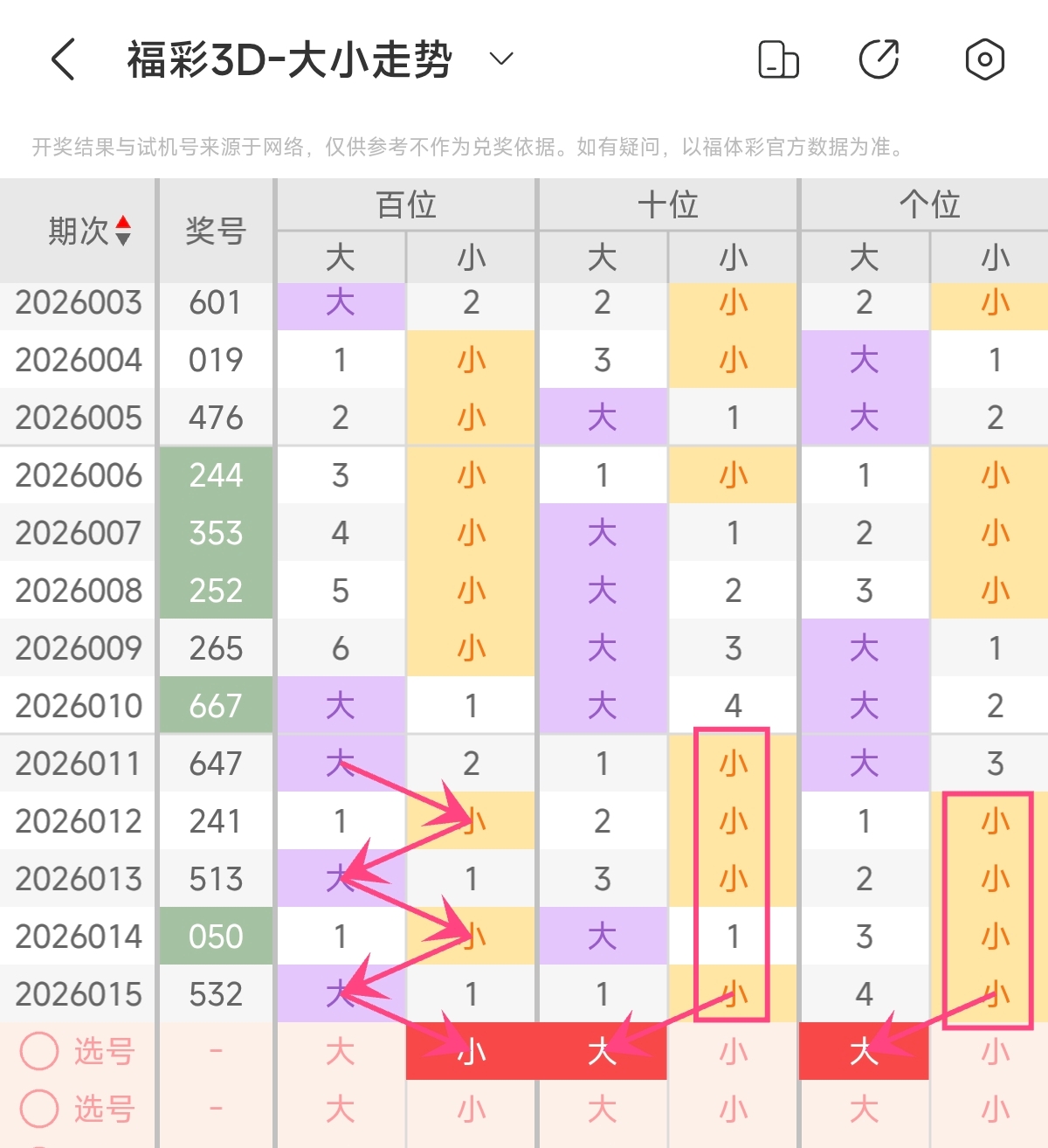 首先让我们回顾一下上期福彩3D第2026015期开奖号码为532 ,为组六形态,大小比为1:2,奇偶比为2:1,跨度为3,和值为10。