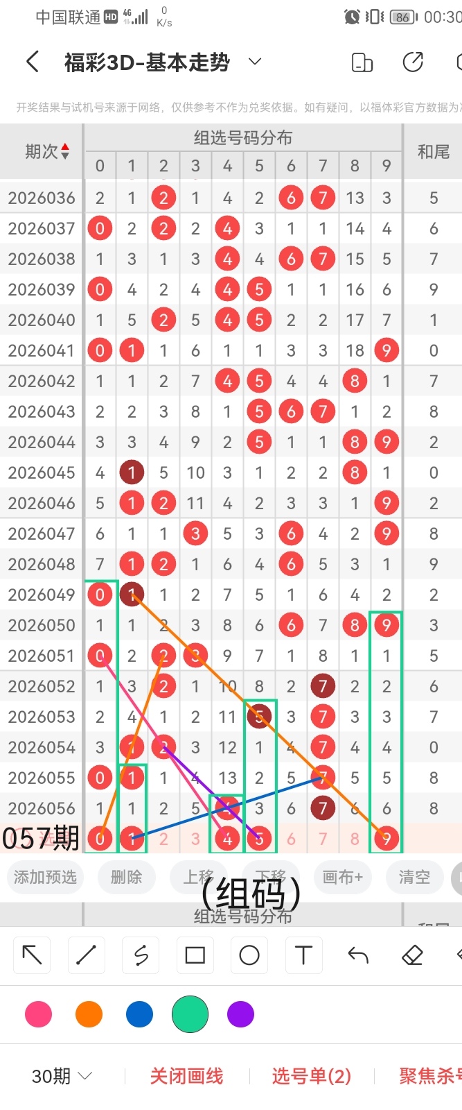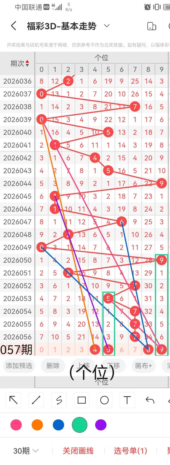 通过以上对上期的简单回顾,下面进入2026057期(下面简称本期)的选号分析: