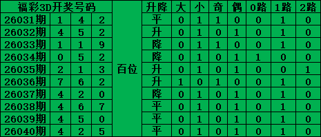 福彩3D是从0-9每期开出3个号码,截至2026040期三个位置最大遗漏的是45期的:百位的8号。