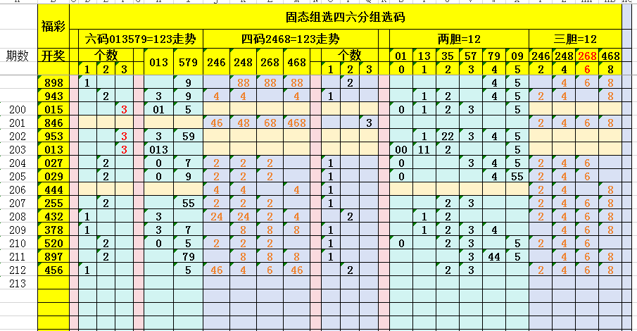 观察以上数据,本期条件参考: 六码=23;三码579-12;二码79=12
