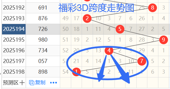 依次是59471跨度,按照路数转换关系来看,那么跨度我们暂定0369258跨,本期个人比较看好3 6 跨。