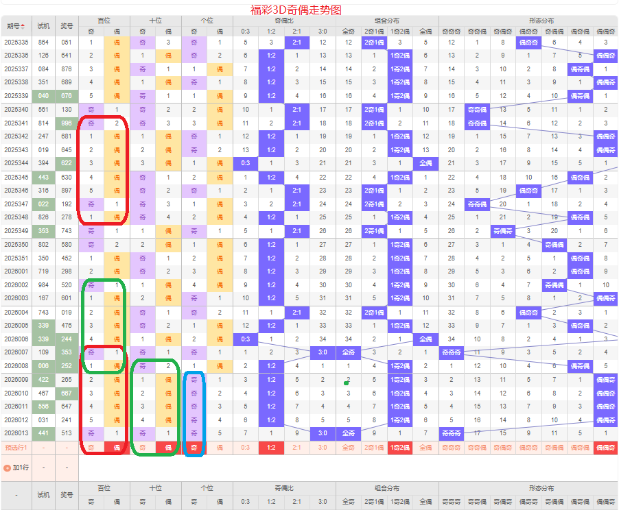 上期奇偶比是3:0,全奇的号码组合方式,从近五期的奇偶数出现情况看,奇数出现7次,偶数出现8次,奇数偶数号码出现较平均,本期侧重两偶的号码组合,侧重偶偶奇或奇偶奇的号码组合方式,根据奇偶形态做五码定位02468/02468/13579或13579/02468/13579