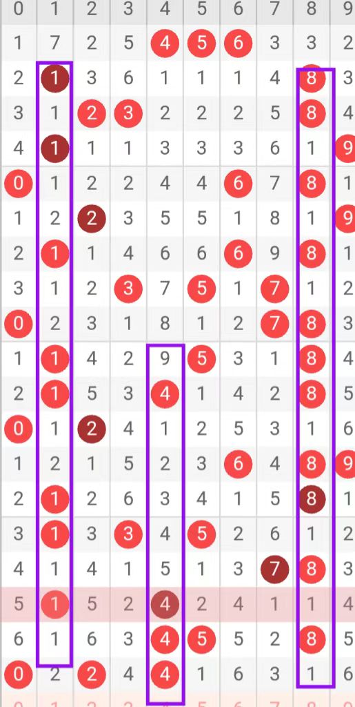 1 如图所示,根据号码热力分布图分析,1 4 8 活力度较高 ,5 7 开始回暖, 6 号开始走冷,个人推荐热好频率需要重点关注,