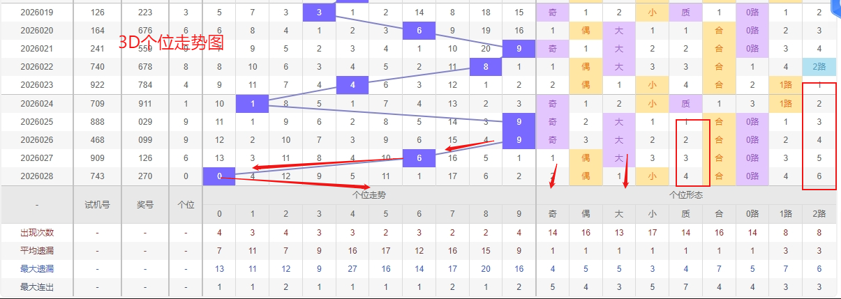福彩3D个位分析:第2026028期个位开出号码0属于小偶数前端,从以上个位走势图中可以看出近100期的大小比约为53:47奇偶比约为54:46大小奇偶数据上有点差异有需求但不是太明显,不太好看这时就要借助连线走势和遗漏数据来帮助我们缩水号码。上期个位落号“0”小偶数0路号码球,号码开出了6振幅,连续多期的小振必被大振幅取代幅符合我们的预期,那么本期我们在个位考虑振幅走势走前依然要转变思路考虑大振幅,具体考虑(2-6)个振幅是我们主要的方向,那么在对个位落号情况进行系统的分析时我们可以明显的看到个位号码走势呈现大范围震荡,尤其是在号码的落位特点上表现的尤为突出,那么本期我们在个位分析时就要注意号码的风险,避免出现踏空。近期3D个位走势分析,号码2表现活跃,呈现出明确的热态趋势,短期内继续开出的可能性较高,需重点关注其延续性并防范热号惯性走强。与此同时,号码5已持续遗漏多期,逐渐进入冷号区间,根据冷热转换的普遍规律,个位冷号在经历深度遗漏后往往具备较强的回补潜力,因此对号码5的突然反弹需保持警惕。综合建议,在追踪热号2连出态势的同时,也需密切关注冷号5的回补信号,因此福彩3D第2026029期个位看好12459。