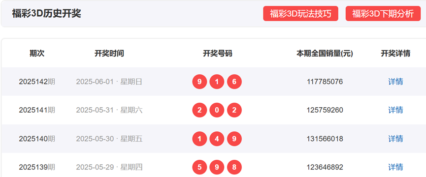 5、综上所述福彩3D-第25143期定位推荐信息如下: