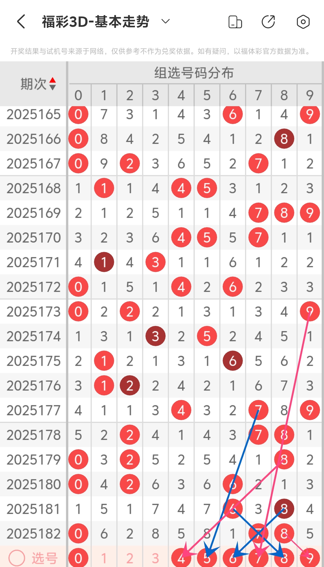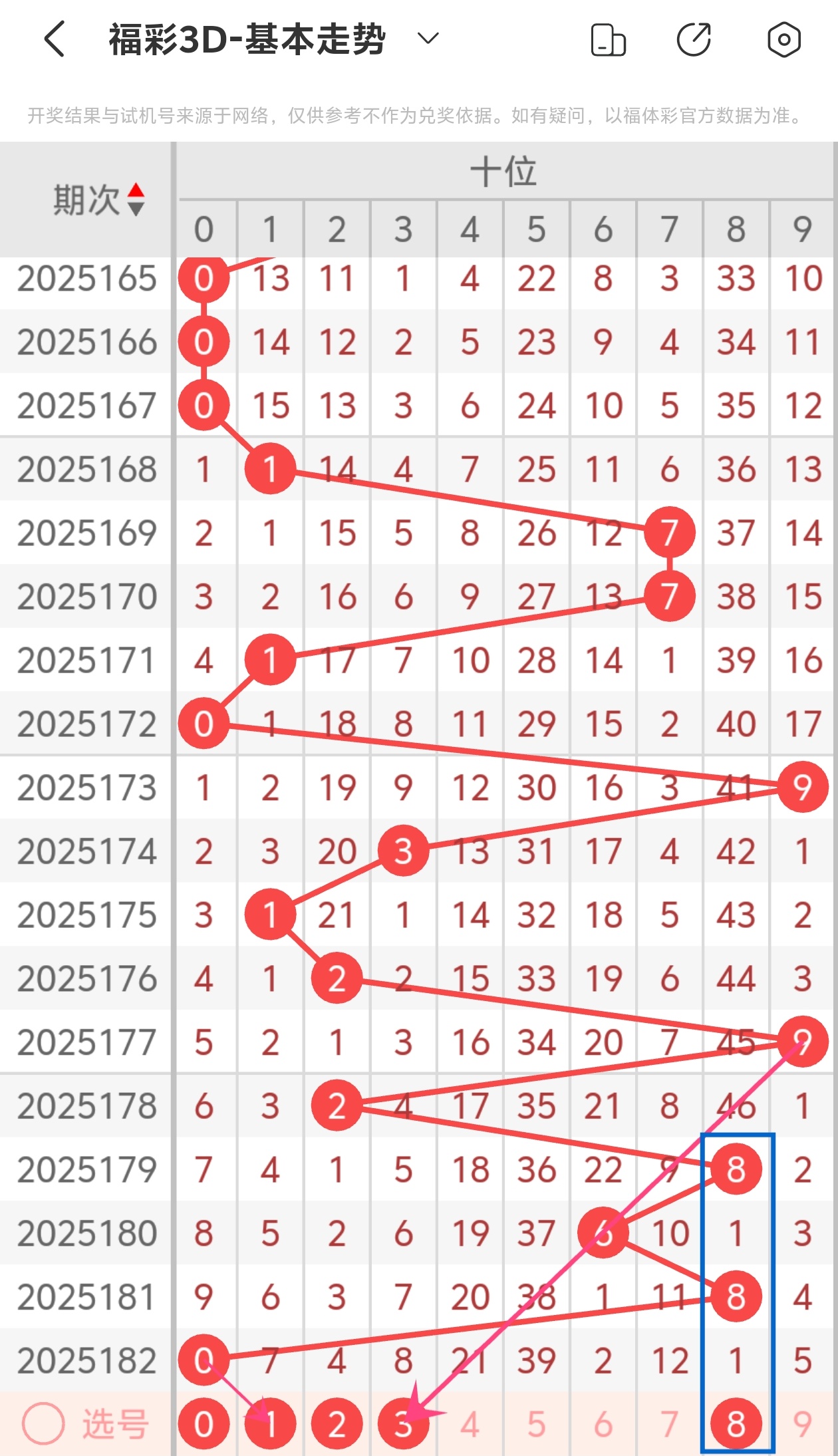 通过以上简单分析,我们看下25183期号码的定位分析: