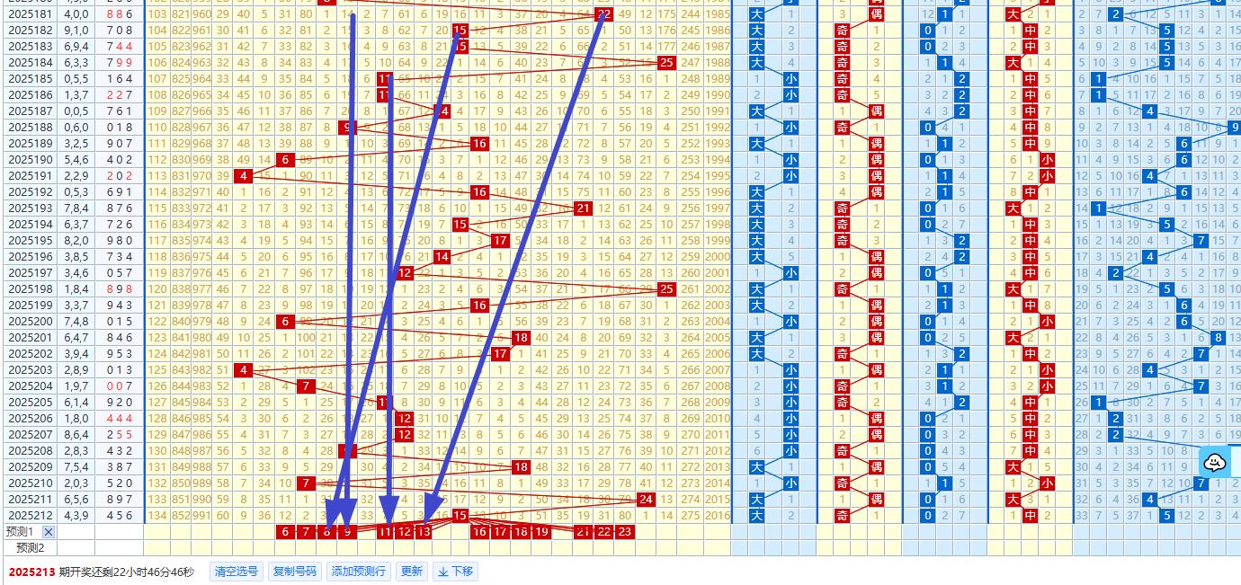 212期的开奖号码456,和值15,偶奇偶,小大大,小中中。跨度2的信息,对第213期进行一些走势分析和预判。