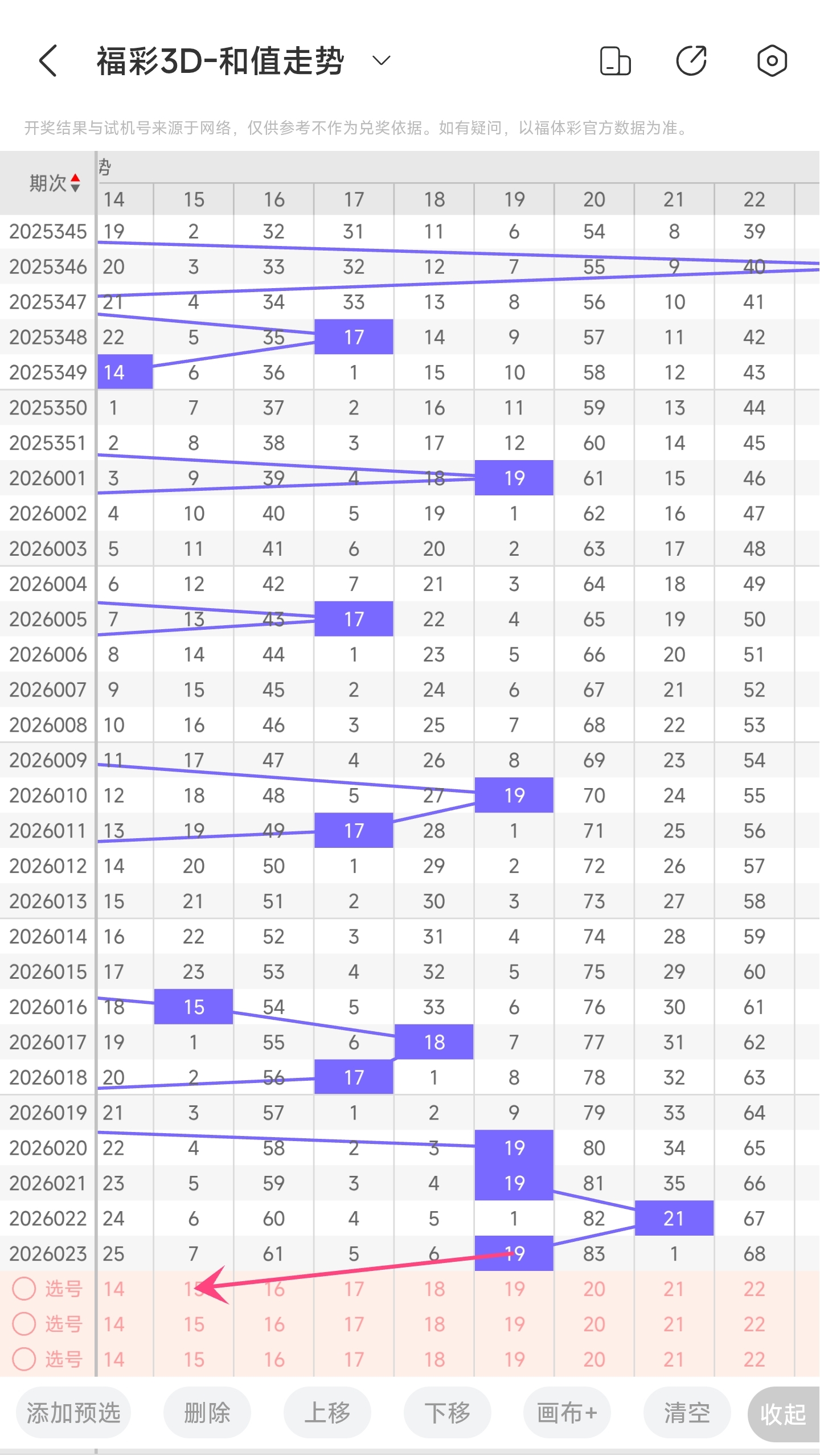 一、通过和值走势分析: