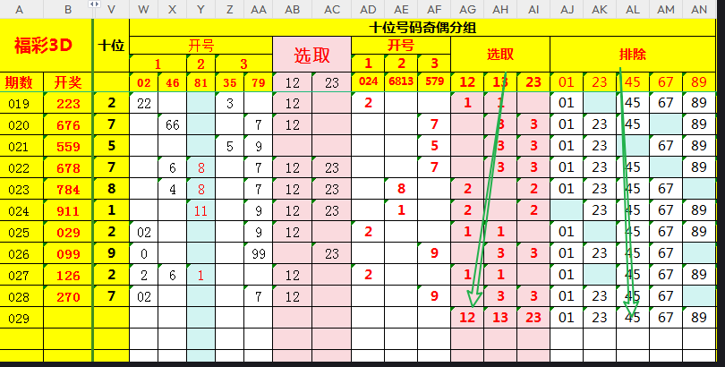 复盘数据,奇偶形态继续走12,即024681开2-3码;十位本期选取12=0246813,排除45,即本期十位号码定026813