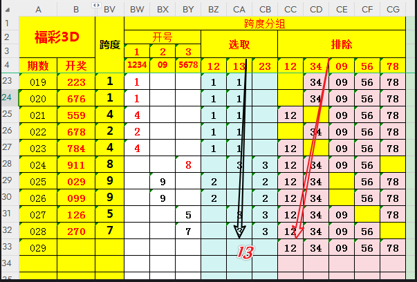 复盘数据,本期选取12=123409,排除12,即本期跨度定349