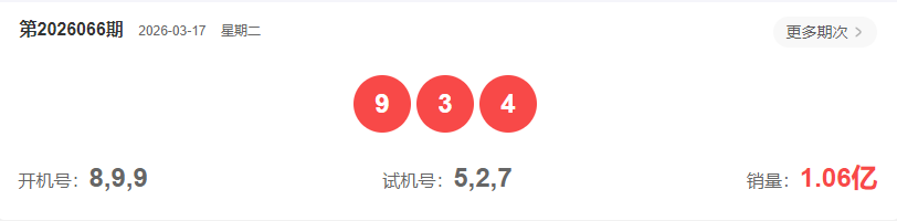 2026066期福彩3D开出奖号934,属性为组六。