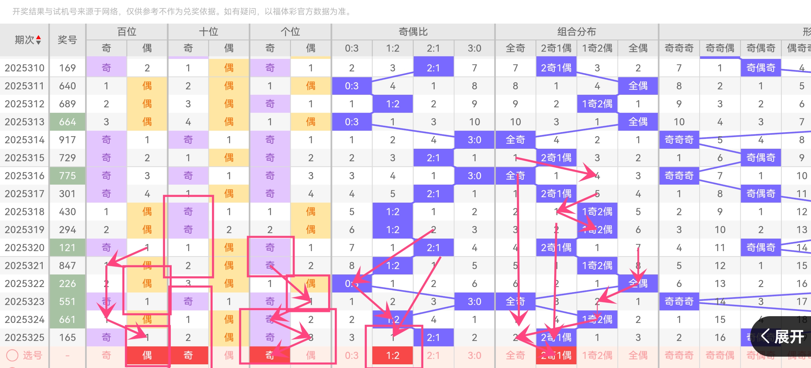 策略 :重号未完全转冷,但25314期、25302期无重号,本期可谨慎排除重号 ,优先全异号组合。