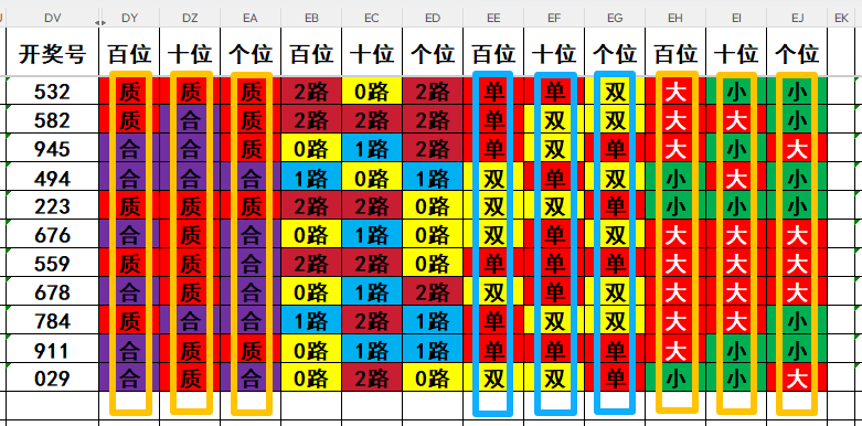 3,目前开奖号个位号码球11天当中,质数(12357)开出了5次,合数(04689)开出了6次,本期重点关注开奖号个位号码球质数的回补!