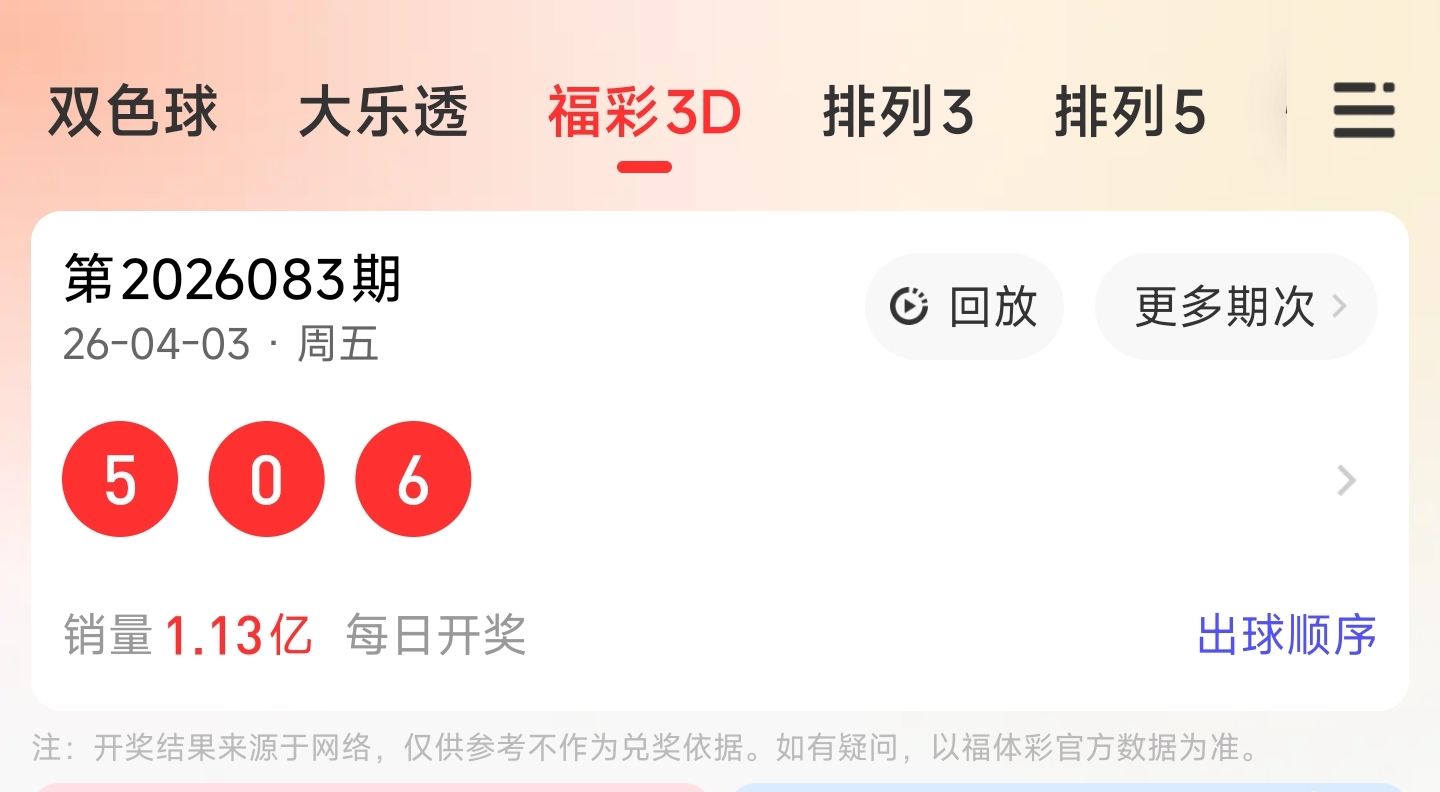 第2026076期福彩3D分析文章,5码复式命中863,2胆命中8。