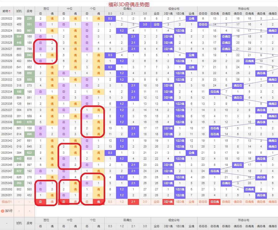 上期奇偶比是1:2,两偶的号码组合方式,从近五期的奇偶数出现情况看,奇数出现7次,偶数出现8次,奇数偶数号码出现较平均,本期侧重两奇的号码组合,侧重奇奇偶或奇偶偶的号码组合方式,根据奇偶形态做五码定位13579/13579/02468或13579/02468/02468