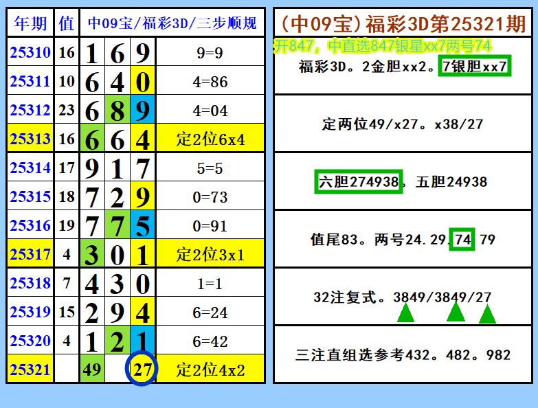(中09宝)视频经典回顾,福彩3D第321期,中直选847银星xx7两号74