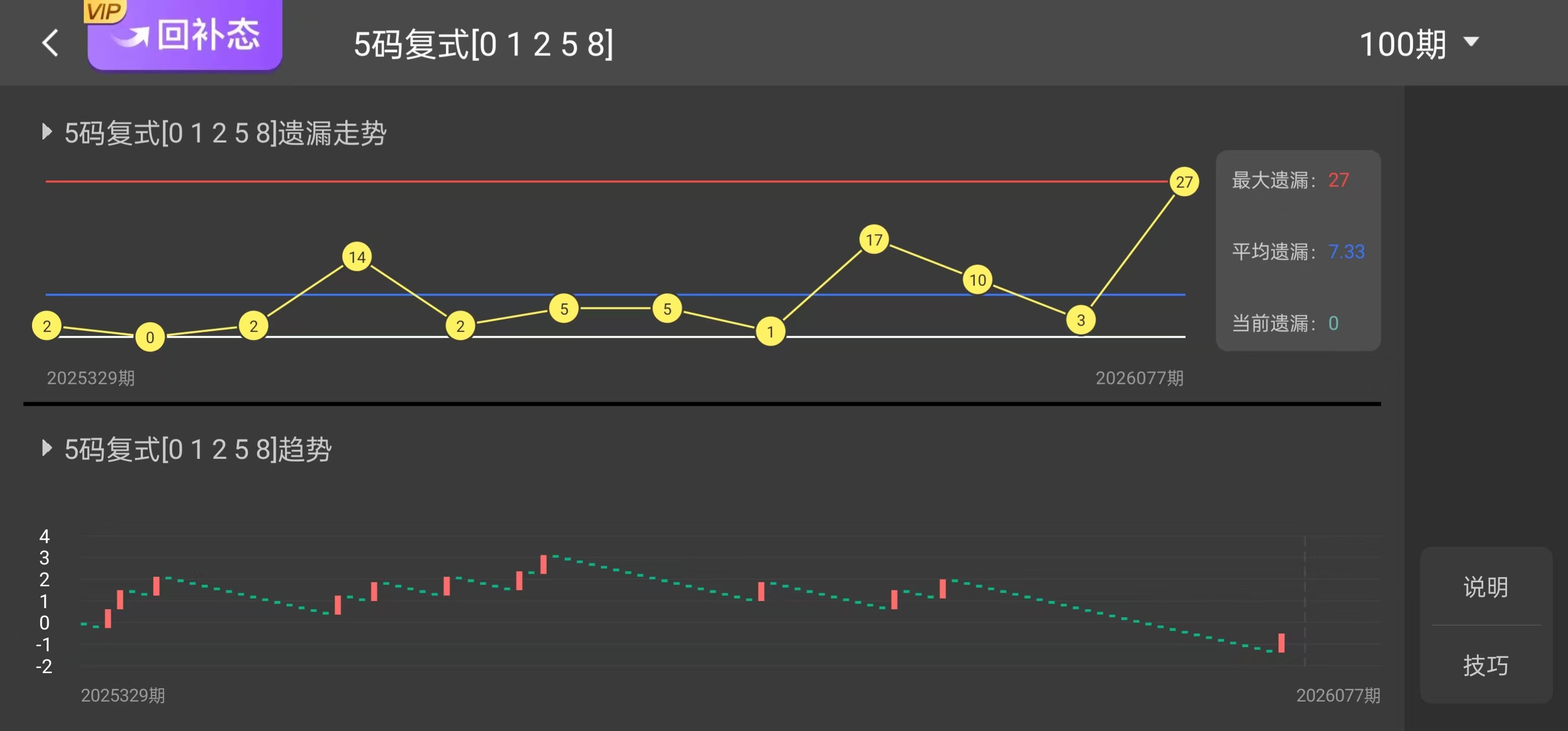 跨度方面,近6期为1,5,7,4,5,3,中位跨度4.5。推荐跨度2(5与3差2,3与4差1,最大最小差2),跨度2近期遗漏较久,属冷态回补。冷热号上,百位5遗漏2期,十位3遗漏4期,个位4遗漏1期,均为温偏冷状态,未出现大冷号,风险可控。