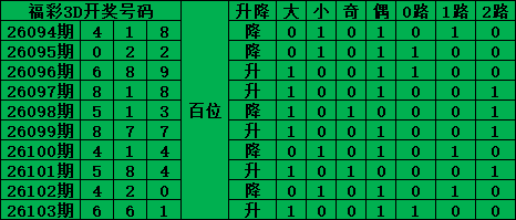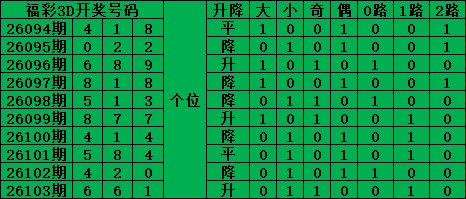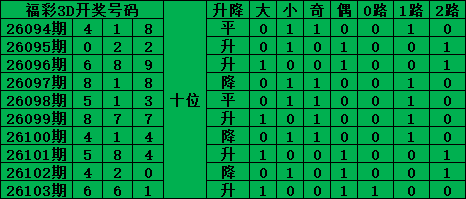 福彩3D第26104期号码分析推荐