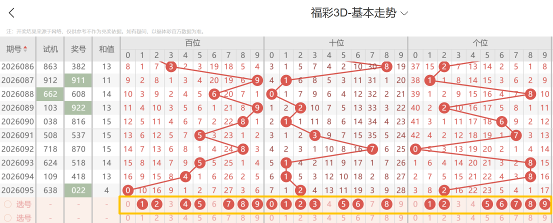 带着粉丝发大财福彩3D第26096期选号条件分析